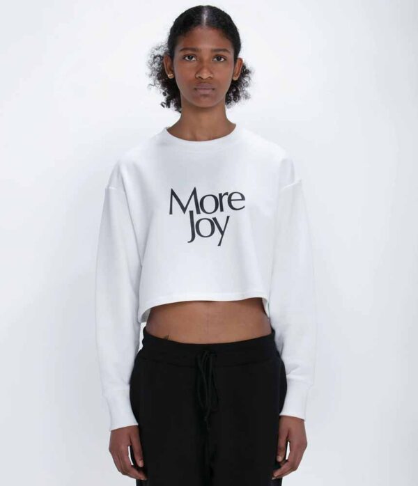 Treat yourself to this stunning white cotton sweatshirt with black ‘More Joy’ embroidery at the front. A wardrobe staple if ever there was one!