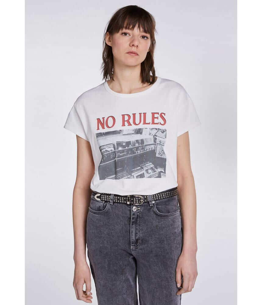 Update your wardrobe with this bold graphic printed tee by Set Fashion. Cut in a flattering relaxed shape with a neat crew neckline with short length sleeves to provide a vintage inspired look. Style with your favourite jeans or cycling shorts and box-fresh trainers for an instant wardrobe uplift.