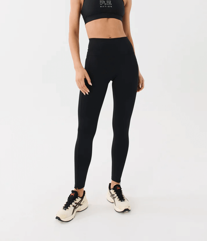 The Amplify Legging in Black comes as part of PE Nation’s Base Colour Collection, where statement streetwear and purpose-driven performance wear are presented in block colour-ways to style tone on tone or build into everyday looks. A classic high rise â…ž active legging with a matte finish, premium compression and butter-soft hand feel, the Amplify Legging features unexpected zipper closure at the front ankle for one style with multiple silhouettes. Made using our EVERYWEAR fabric, the Amplify is designed for before, during and after Pilates class. Featuring subtle panel stitching on the front, and folded waistband for comfort, the Amplify is an all-round staple perfect for the studio and streets, matched with sneakers or six inch heels. A tonal P.E Nation embroidered logo at the hip rounds out the design. Team it with all active and everyday fits.