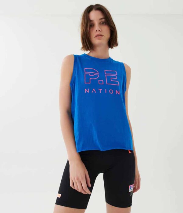 The Shuffle Tank in Blue comes as part of the Adventure Is An Attitude Collection. A classic P.E tank cut from luxuriously soft 100% organic cotton, the Shuffle Tank is a modern everyday staple fit for a multi-faceted life. With comfortable binding at the neck and arms, and a raw cut hem, this off-duty essential features a P.E Nation logo centre-front. Wear it back with any of your athleticwear or street-sport favourites, or layer over performance wear on training days.