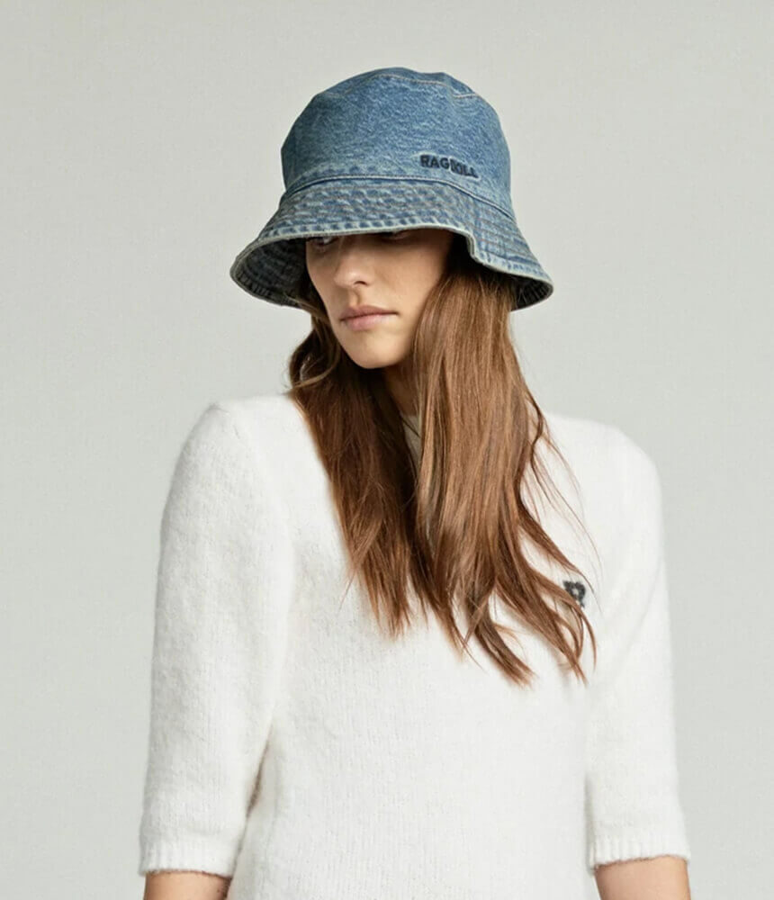 A light-wash blue denim bucket hat finished with an embroidered logo, perfect for creating some stylish shade in the sun. The Bob Hat features a slightly distressed wash for a unique appearance and is fully lined to keep it light and airy. Pair with a floral frock for a day in the garden or go bold with double denim dressing!Â