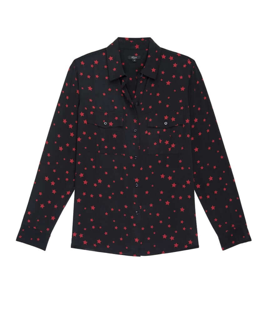 We are starry eyed at this Rails Rhett shirt. Cut from pure silk, this luxurious piece has a beautifully soft feel and features a classic button down fastening, shirt collar and chest patch and flap pockets. An out of this world stellar red star print provides a pop of colour. Wear with your favourite jeans under the Apparis Sophie coat for a cosy, stylish look.