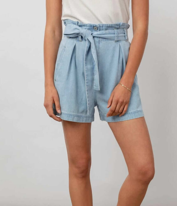 The Rails Belle Shorts are a structured light wash denim, high rise, paper-bag waisted pair of shorts. Cut in a lightweight, vintage washed Cotton/Tencel blend fabric they feature front pockets, pleated front detailing and a cinchable tie-belt. Add a simple top and slides and you are staycation ready!