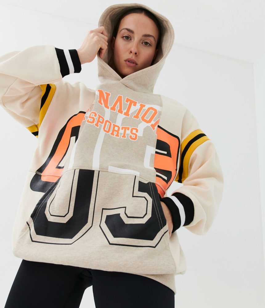 The Reflex Hoodie in Grey Marl comes as part of the Stand Tall, Together Collection. An oversized style in heavyweight brushed fleece, the Reflex Hoodie features an oversized hood and longline fit with elasticated cuffs and hem for supreme comfort and appeal. With contrast varsity-style rib inserts in shoulder seams, an asymmetric rib insert in the hem and cuffs and contrast panelling at centre front, the hoodie includes a pouch pocket and loud P.E Nation splice print on front panels. Pair it with a P.E Nation legging for a complete P.E look.
