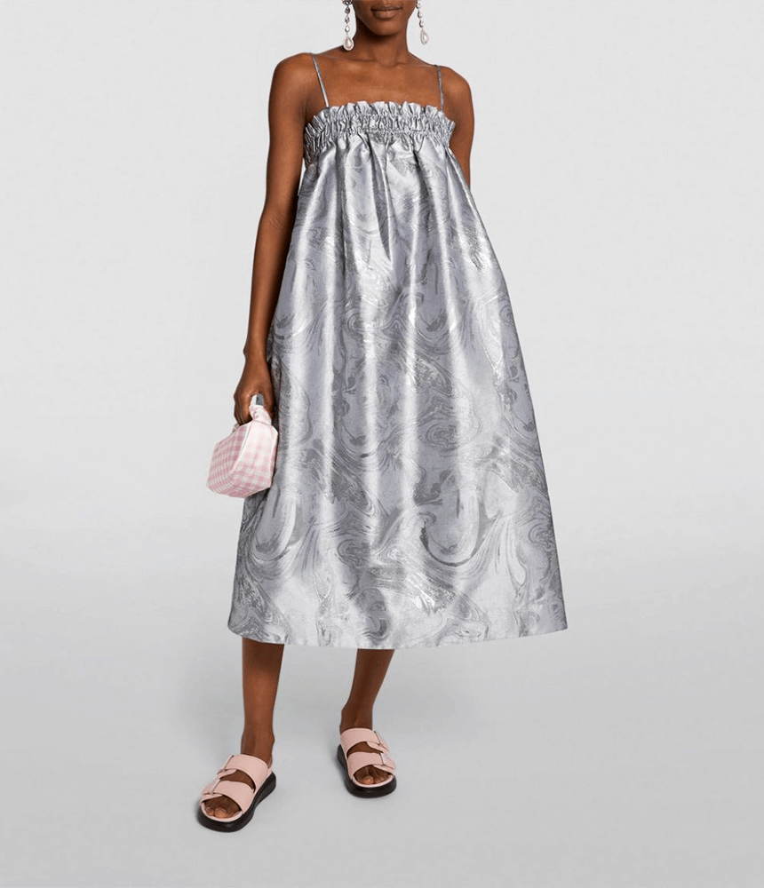 Ganni Tech Seersucker Oversized Puffer in Tofu