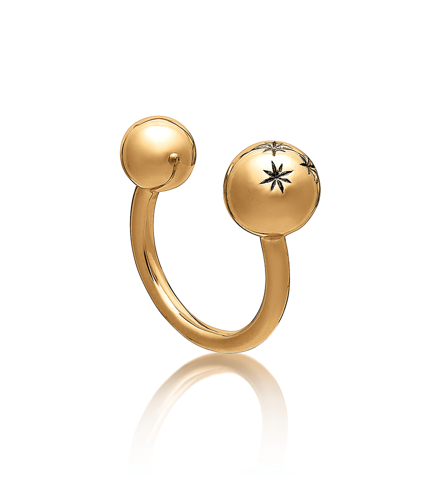 Bold and ever-evolving this smooth, sleek ring with orb-like spheres is designed to embody the woman of the future. Powerful in her simplicity, style solo or fearlessly layer. An everyday essential that can be worn from desk to dinner.