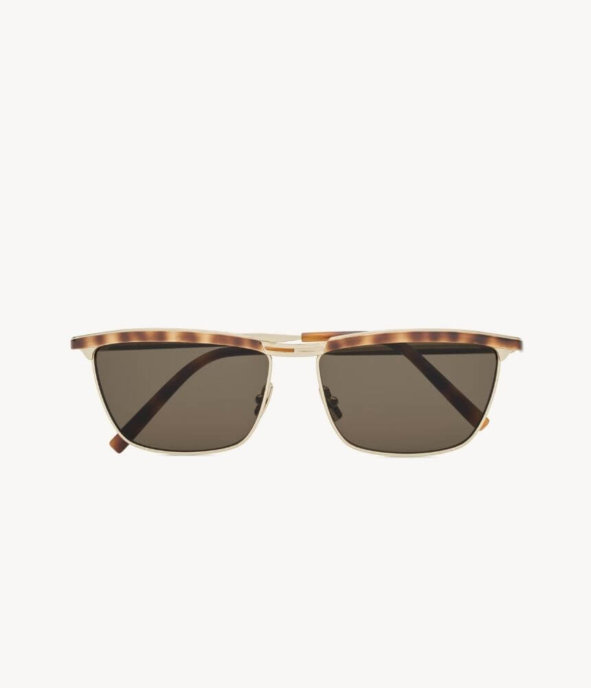 Elevate your eyewear collection with the Saint Laurent SL 795 Joe 001 57 Sunglasses — a refined pair of men’s designer sunglasses that combine iconic Parisian style with modern sophistication. Crafted by the legendary luxury fashion house Saint Laurent, these sunglasses feature a striking gold metal frame paired with solid grey lenses for a timeless, versatile look that effortlessly enhances any outfit.