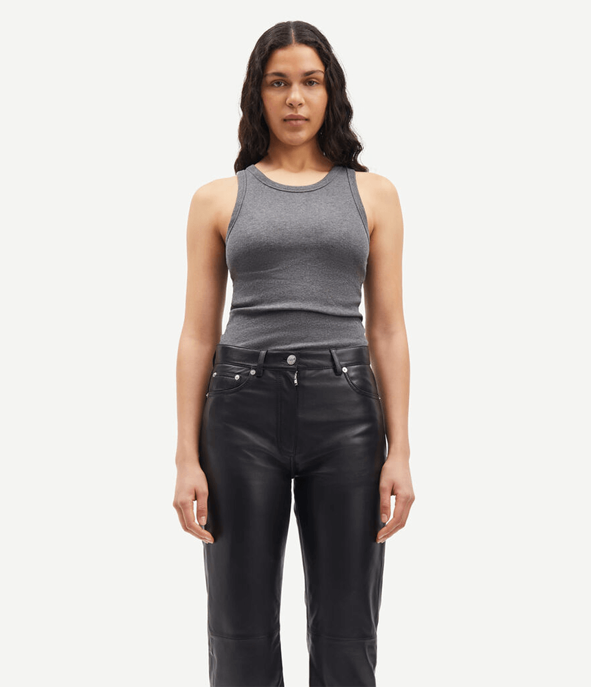 Rib-knitted tank top with a slim fit. Main material made from an elastic organic cotton-blend. This product contains organic cotton grown without the use of GMOs or hazardous chemicals.