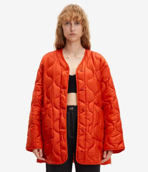 Amazon is the perfect trans-seasonal jacket that oozes Scandi cool. This lightly padded jacket is constructed in a ripstop polyamide fabric with a slight sheen. Amazon features a wavy, quilt effect and has oversized front patch pockets and a button fastened front. Style with a chunky boot and layer over a statement tee for a laid back, off-duty look.