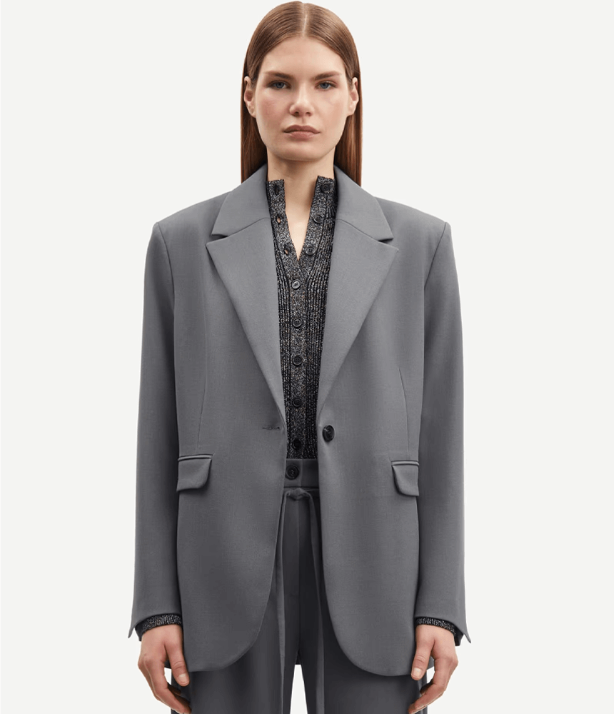 Blazer with an oversized fit. Single-breasted button closure on the front. Flap pockets on the front and pocket on the inside. Notched lapels and shoulder pads.Â