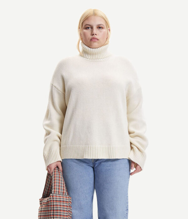Meet the Keik Turtleneck by Scandinavian brand Samsoe Samsoe. Expertly crafted in a chunky gauge wool blend yarn to create a loose fitting roll neck jumper that will fast become your go-to piece this season. As the days shorten, the Keik can be styled effortlessly with a legging and chunky soled boot and is roomy enough to layer over a tighter fitting base top.