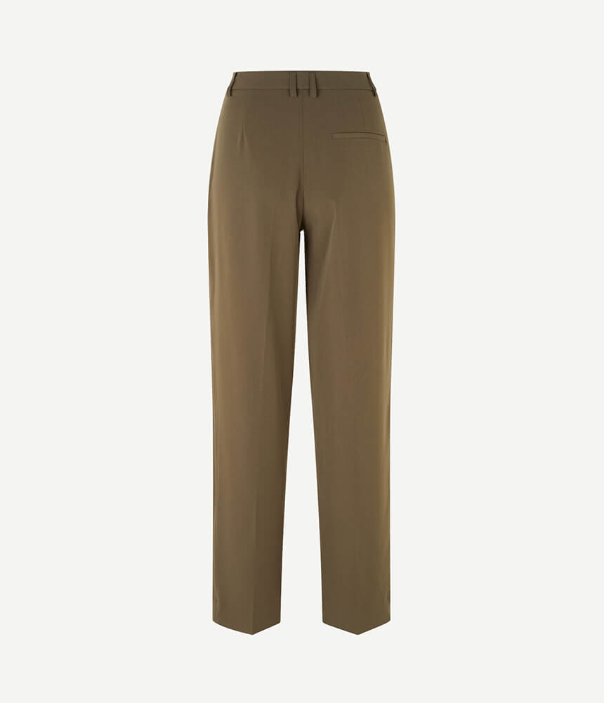 Relaxed fitting tailored trousers with front pleats. Belt loops, back welt pocket detail. Polyester and recycled polyester blended fabric with added stretch.