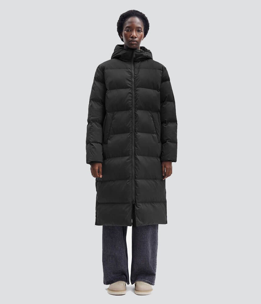 Cocoon yourself in the generous proportions of this voluminous long quilted coat which is padded and insulated for added snugness. Featuring dropped shoulders, a drawstring hood, zip fastening to centre front and convenient side splits for longer strides this will be your warmest coat of the season. Pair with jeans, boots and a colourful sweater for a fabulous weekend ensemble.