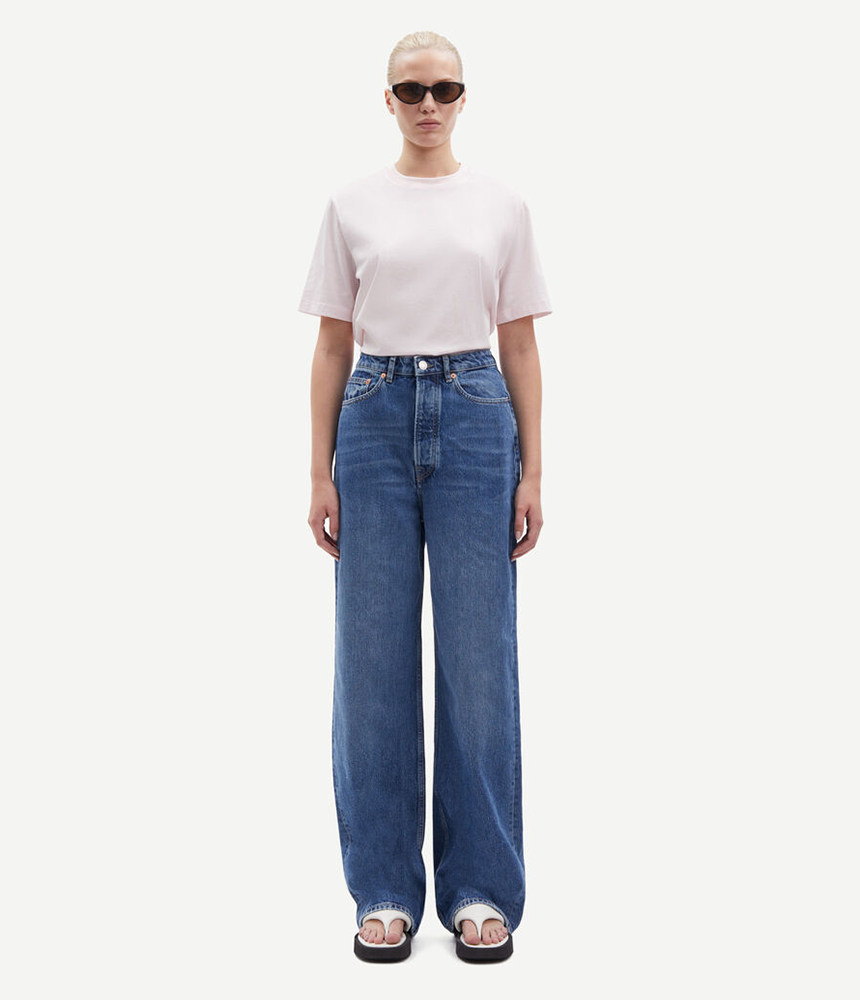 The Shelly is a loose fit and wide leg. Button and zipper closure at the fly. Five-pocket style. Belt loops. Main material made from 100% organic cotton.