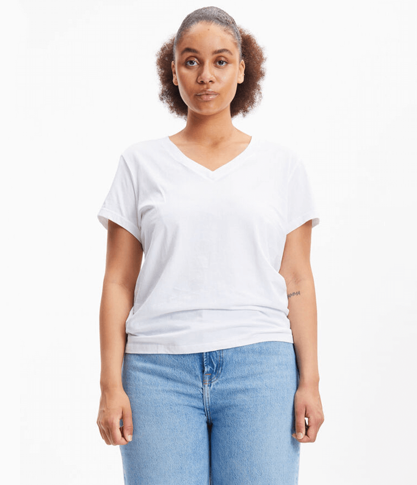 Introducing the timeless and versatile Samsoe Samsoe Solly V-Neck T-Shirt in classic white. Crafted with the finest quality, this essential piece is a must-have for every wardrobe. Whether you’re aiming to “shrink your wardrobe” by investing in timeless pieces or seeking a “go-to classic” for everyday wear, this t-shirt is the perfect choice. Its clean and minimalist design makes it a seamless addition to any outfit, effortlessly pairing with black, white, or denim ensembles.