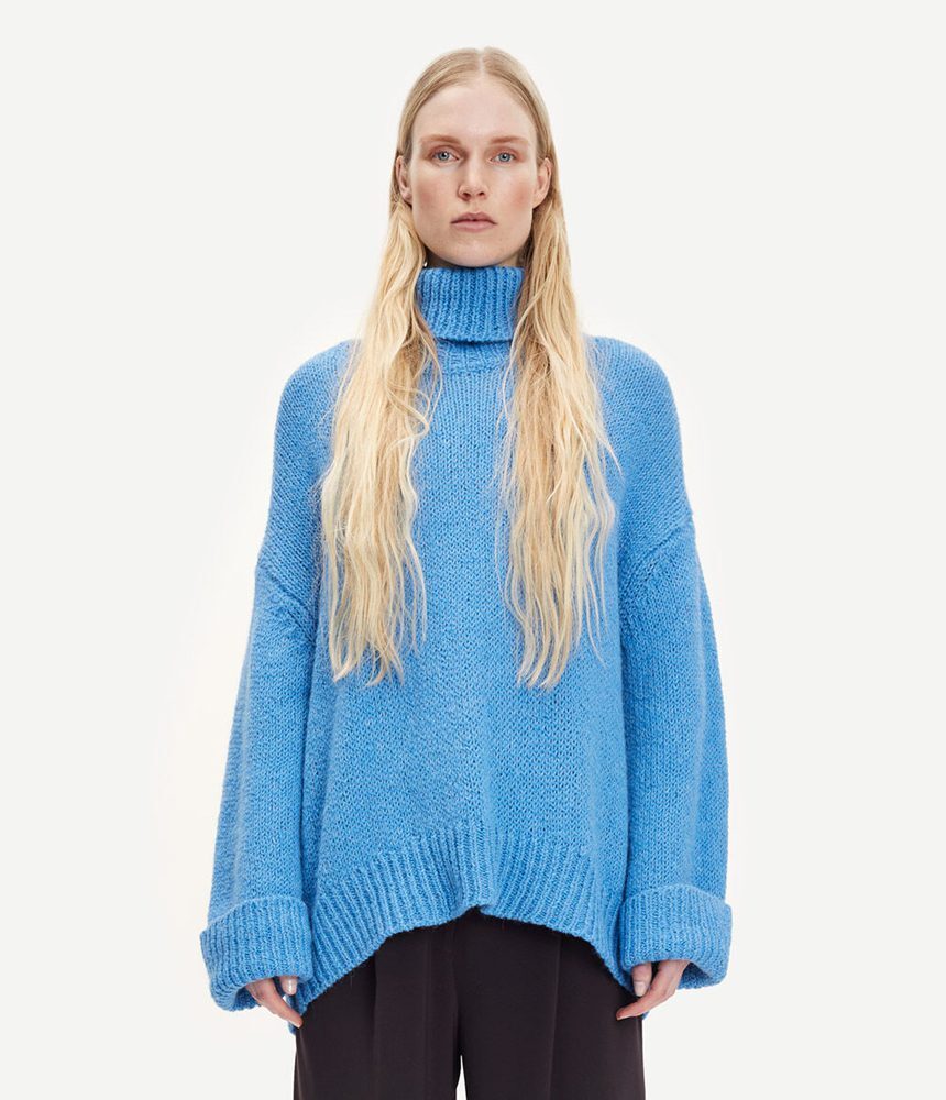 The Molli turtleneck by Samsoe Samsoe is a chunky knitted, loose fitting piece with a cosy roll neckline, dropped shoulder-line and features fully fashioned seams to create an easy to wear, versatile garment that looks great with almost everything in your wardrobe. We would style with denim and a chunky boot for the perfect trans-seasonal ensemble.