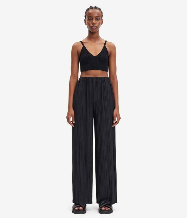 The Uma trousers from Samsoe Samsoe are the epitome of Scandi minimalism. Expertly crafted from a recycled-polyester blend and cut to a breezy wide leg silhouette. The textured plisse fabrication shows that less can be more.
