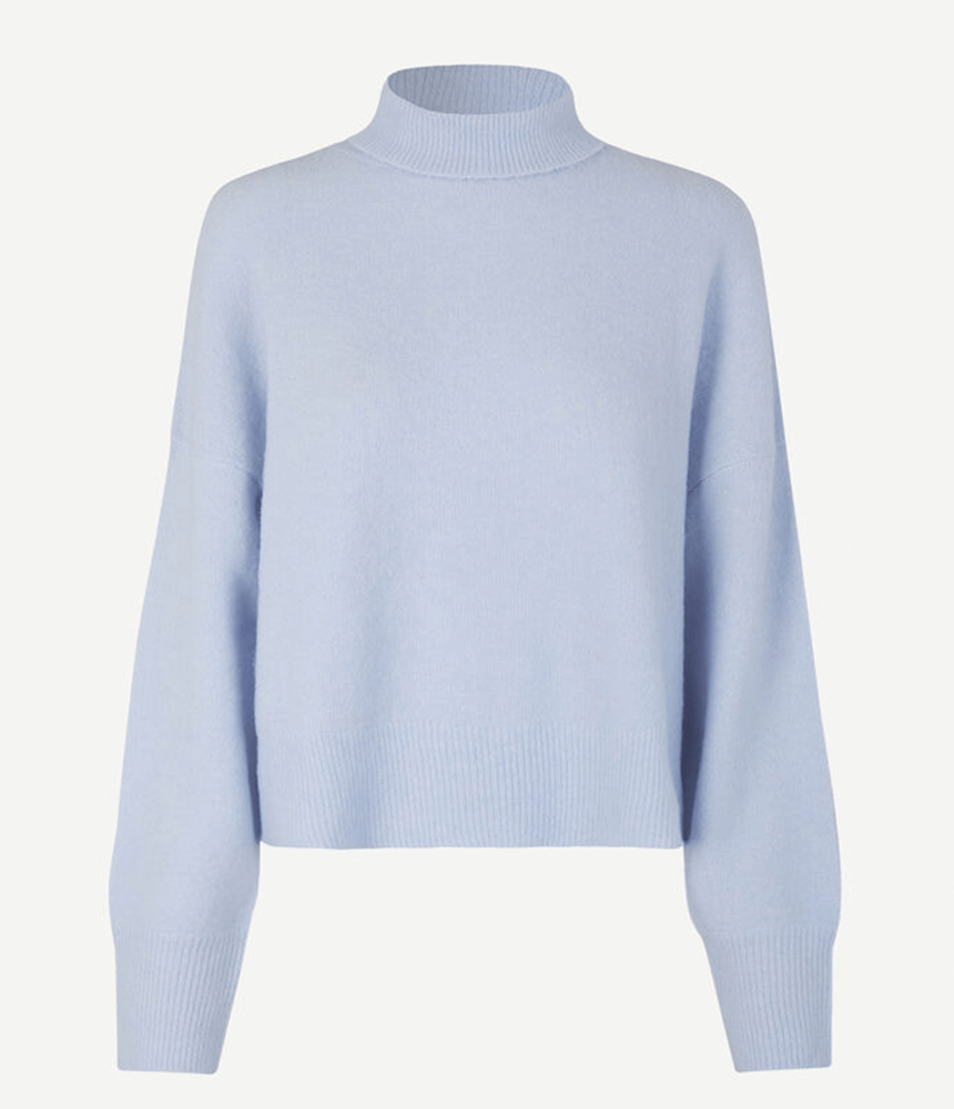 Knitted in a combination of wool and alpaca fibers which creates a tonal melange effect this light and fluffy sweater. Ribbed trims give a slim and neat fit to the cuffs and turtle neck collar of this cosy and stylish knitted sweater.
