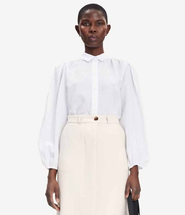 The Mejsa Shirt is an ultra-versatile piece by Scandi brand Samsoe Samsoe. Crafted in a stunning Tencel and Linen blend fabrication in classic, crisp white, Mejsa is cut in a loose fit with deep armholes and long puffed sleeves. Feminine gathering details at the shoulders and back neck yoke seam provide a modern update to a white shirt can be styled up or down effortlessly and carry you through all seasons.