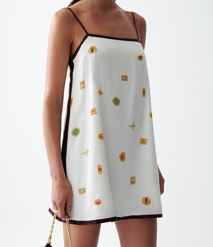 Ganni Printed Double Satin Mini Strap Dress in Black