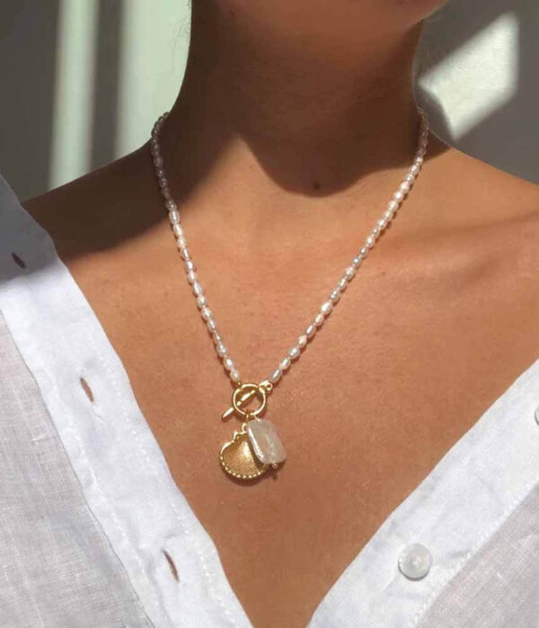 The Sandy Necklace is a classic piece and definitely one of our favourites! Exquisitely handmade using freshwater pearls and gold stainless steel charms.