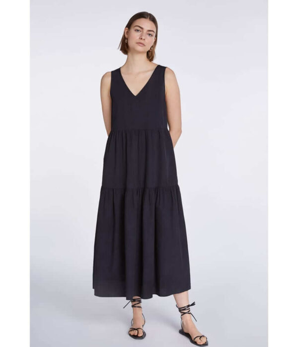 We simply adore this delightful LBD by SET. Cut to a loose silhouette with a wide, tiered skirt and crafted in a simple cotton poplin fabric in classic black. Add a strappy sandal and you are ready for Summer.