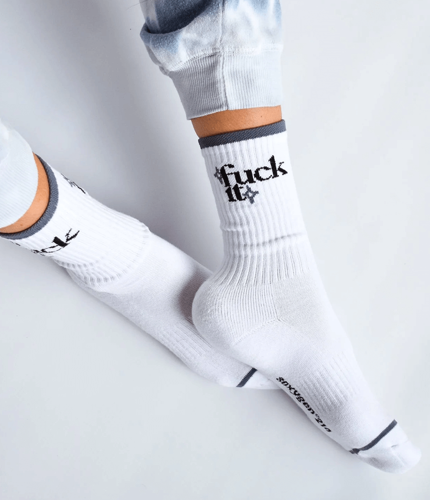 Ribbed Crew Sock with slogan detail, cushioned heel & toe and arch support.