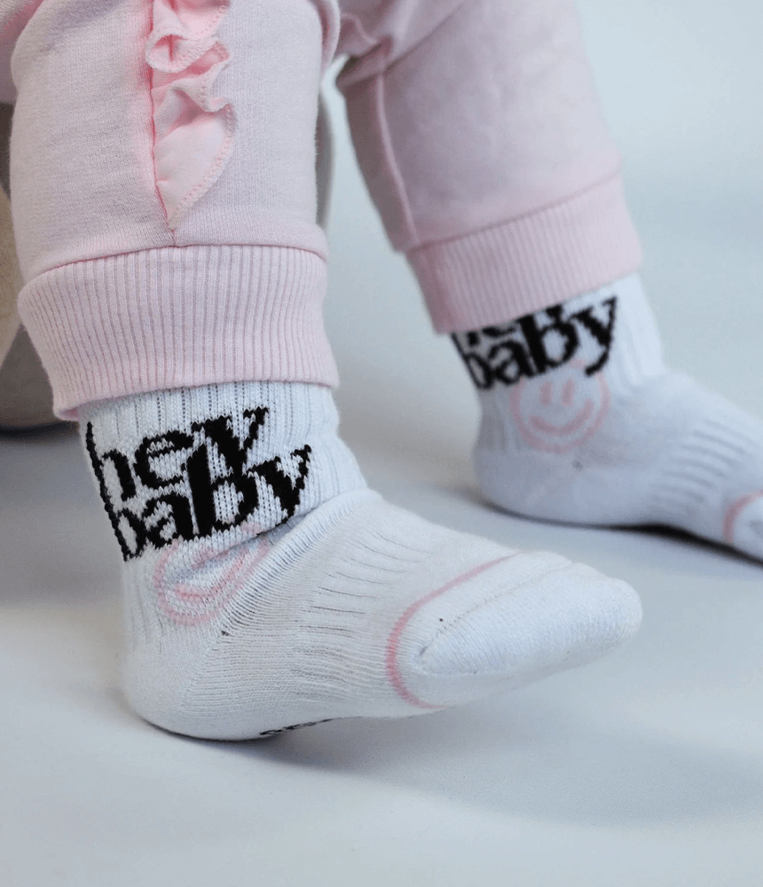 Ribbed crew sock with cushioned heel & toe and arch support. Slogan detail.