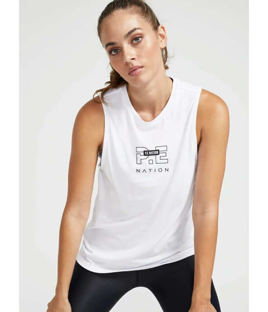 The Twist Serve Tank in optic white comes as a part of their Do It Your Way Collection. A staple style cut from a super soft organic cotton fabrication. Designed in a long-line, loose silhouette. Finished with a P.E Nation flat rubber logo print with a P.E Nation heat press patch detail on the front chest. This easy to style piece looks equally as cool with a pair of leggings as it does with a staple denim piece.