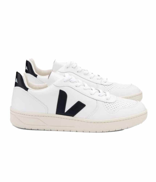 The women’s V-10 model from Veja combines a vintage aesthetic with ecological and sustainable materials. Combining sharp, contemporary design with orthopaedic excellence, Veja is known for making elegant, classic shoes that are legendary for their comfort. The V-10 trainers are cut from leather in a classic low-top style. With a round toe, the shoe sports a distinctive V across the side and perforation over the toe.
