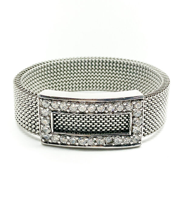 A striking and weighty mesh bracelet with a fabulous buckle style front. Crafted in 925 Sterling Silver and set with crystals. In very good vintage condition. This one combines glam with edgy cool to perfection.